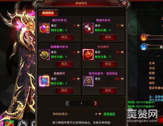 傲天魔法王座披风系统背后的战魂商店,小编看中的是披风技能书?变身回血,这才是关键。披风等级相对提升起来容易一些,但要获得披风技能稍微难了点,所以千万要把握好这个200战魂值兑换披风技能书的机会。