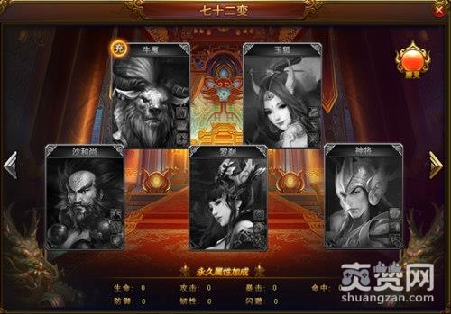 点击主界面或聚灵界面上变身人物的图片可进入变身界面。可查看变身人物附带的属性,变身技能,变身天赋,不同的变身增加的属性特点不同,主、被动技能,天赋各有特色,可应对不同的场合。可对变身人物进行进阶和自动进阶操作,点击自动进阶后系统会一直进阶直到成功升阶或用完进阶道具。