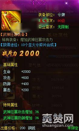 生命+2000,攻击+600