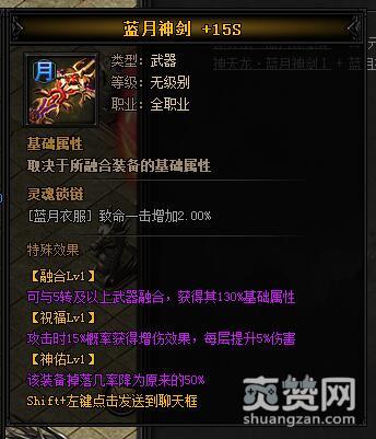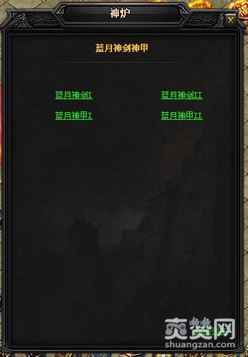 拆分的方法是到神炉处,点击蓝月神兵中的神剑神甲,然后在弹出的对话框中选择一项。这里我们选择的是蓝月神剑II。