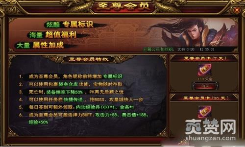 6、成为至尊会员可激活神力buff:攻击+88、暴击值+188、经验+50%