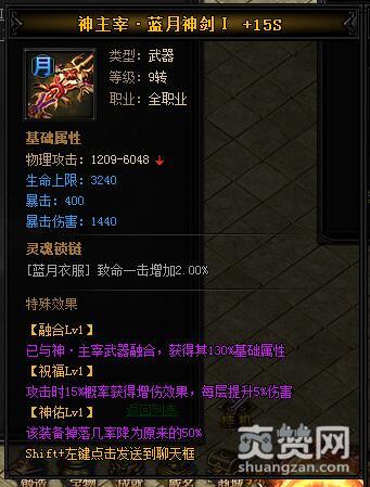 拆分的方法是到神炉处,点击蓝月神兵中的神剑神甲,然后在弹出的对话框中选择一项。这里我们选择的是蓝月神剑II。