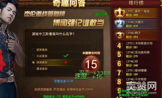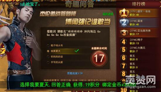 这首歌相对陌生一些,好像是杰伦在雪碧广告里面放过。当然这下也完全不必多说,肯定是《我要夏天》。一连回答了10多道关于杰伦的问题,几乎全是满分,不错哟!一开始小编以为所有30道题都和周董相关的,后来才发现也有一些关于傲天魔法王座游戏的内容,好久没上来玩了稍微有点生疏。