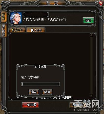 俗话说,不想当将军的兵不是好士兵,那么来923yx《武易》一定要称霸武林,让天下人尽识!不过,要想四海八荒人尽皆知,除了称霸武林,还有一种方式哦!那就是923yx《武易》的社交系统! 如果各位大侠在923yx《武易》中遇到志同道合的朋友,只需选择人物,在人物状态栏的功能列表中选择“添加好友”,等待对方确认后,即可成为好友。