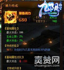四、神力特戒:攻击时5%几率无视目标30%防御;玩家们佩戴特戒以后,死亡后不会掉落,因此可以安心佩戴在身上。神力特戒专门用于提升人物的伤害输出,在攻击时有很大的几率百分比忽视对手的防御,能打出超级高的爆炸伤害!