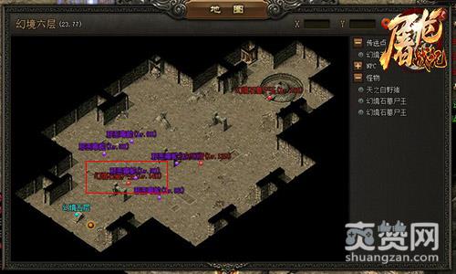 老规矩,先到热砂荒漠,找到NPC,进入幻境,直上六层,到红框所示尸王位置就是了。你没看错,就是这么简单。
