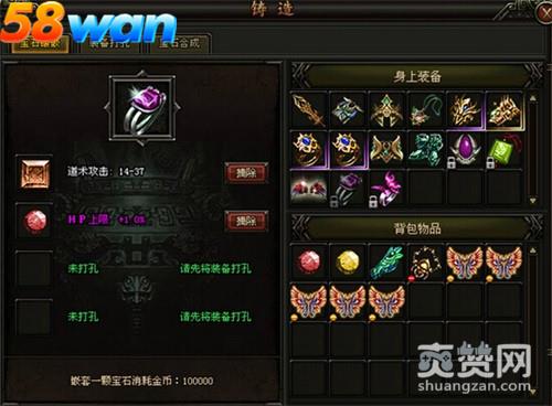 打孔之后镶嵌更多的宝石,品质越高的宝石可以为装备提供越强大的属性.高级宝石可用低级宝石合成获得,使用4个同等级的宝石可以合成高一级的宝石一颗.