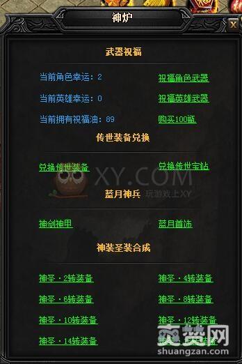 拆分的方法是到神炉处,点击蓝月神兵中的神剑神甲,然后在弹出的对话框中选择一项。这里我们选择的是蓝月神剑II。