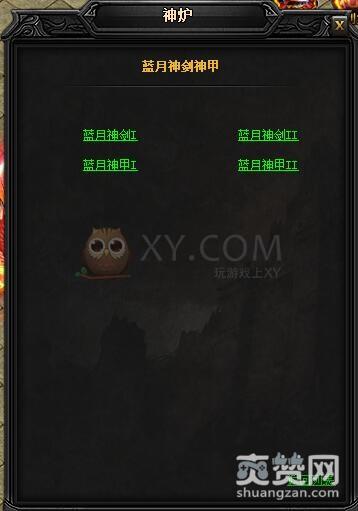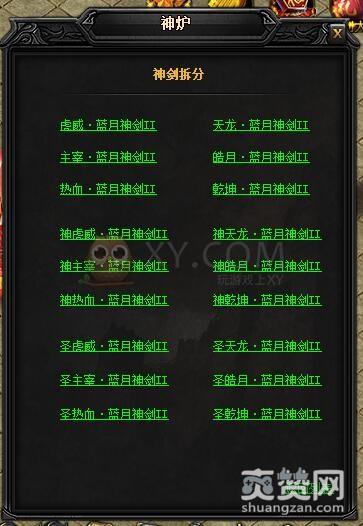 拆分的方法是到神炉处,点击蓝月神兵中的神剑神甲,然后在弹出的对话框中选择一项。这里我们选择的是蓝月神剑II。