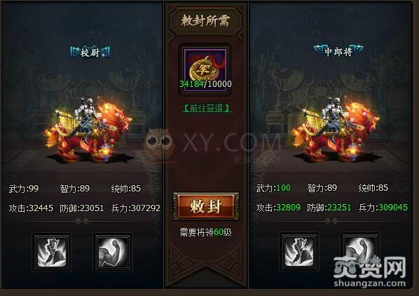 从校尉到中郎将:勒封所需军功10000点,需要将领60级才能勒封。