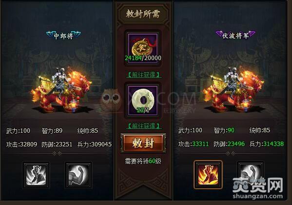 从中郎将到伏波将军:勒封所需军功20000点,美玉1个,需要将领60级才能勒封。