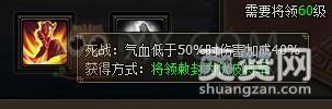 同时激活被动技能死战。死战的效果说明是气血低于50%时伤害加成40%。获得方式:将领勒封为伏波将军。