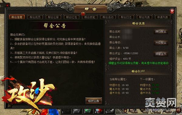 1、帮会成员积极捐献金币,快速升级帮会,获得更强帮会BUFF;