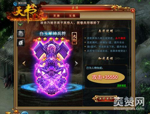 在哥们网《天书世界》,想要提升角色自身实力,那么必然离不开兵符系统。值得一说的是,兵符系统专门为角色加成攻击力。而且,兵符系统的玩法有很多噢。