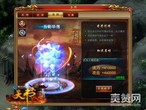 在哥们网《天书世界》,进阶圣器可以为角色带来更多的攻击属性和法力属性,而且圣器等阶越高,加成越强。