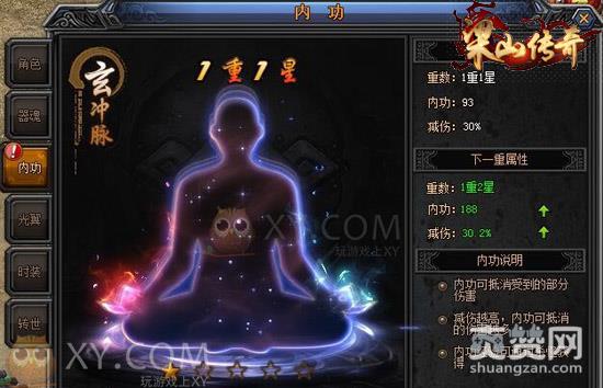 在XY游戏《梁山传奇》中,玩家可以通过内功界面,看到自身内功的重数跟星数。每一重有五星,当升满了五星时就会自动提升一重内功。让你的境界更高,减伤也越多。想要升级内功,只需要在平时练级时击杀怪物就可以轻松获得内功值,并且没有任何限制,击杀得越多,获得的内力值也越多,自然内功重数也跟着水涨船高。真正做到打怪练级时就可轻松修炼内功。