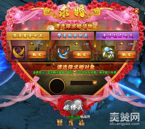 侠侣系统需要玩家等级达到60级后才会开放,且求婚对象只能是同势力的玩家,毕竟道不同不相为谋,惊喜之处就在于对性别没有限制,只要真心相爱,可以跨越性别。当求婚者准备好戒指后就万事俱备了,戒指一共分为3种,每种戒指增加的属性是不同的,价格越贵增加的属性越多。