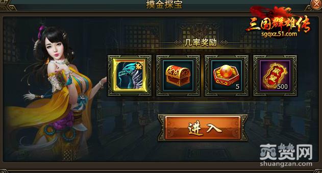 摸金可获得奖励:血金,蓝色装备,升星丹,声望和神兽螭首碎片。