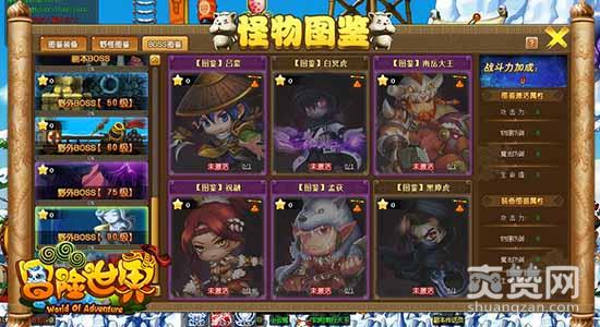 在野怪图鉴中,野外怪物按照出没地点被分为12个种类,江州、扬州、益州、豫州中出现的所有怪物均被纳入图鉴。而在BOSS图鉴中,BOSS按照等级区域被分为6大种类,腾讯《冒险世界ol》中的BOSS大多数为魔化后的三国名将,在图鉴中玩家可以快速一览不同区域中出现的BOSS,并且可以通过竹蜻蜓直接瞬移到BOSS身边。
