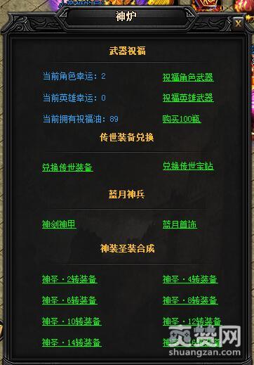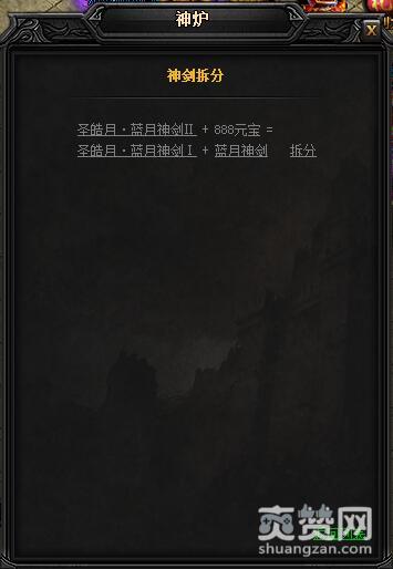 拆分的方法是到神炉处,点击蓝月神兵中的神剑神甲,然后在弹出的对话框中选择一项。这里我们选择的是蓝月神剑II。