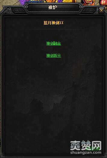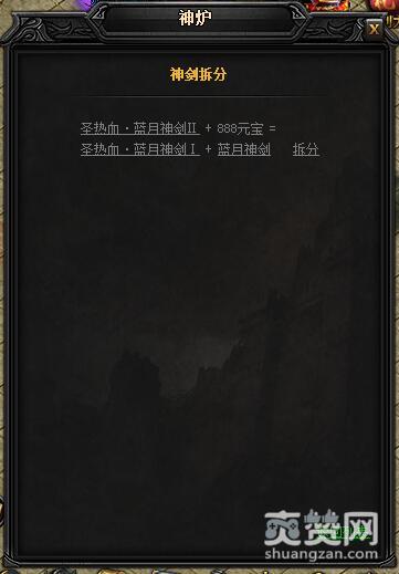 拆分的方法是到神炉处,点击蓝月神兵中的神剑神甲,然后在弹出的对话框中选择一项。这里我们选择的是蓝月神剑II。