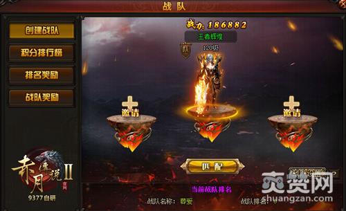 在9377《赤月传说2》里,玩家点击跨服3V3战场的按钮后,即可进入跨服战队界面,组建属于自己的3v3跨服战队。玩家可在战队界面内创建由自己命名的战队,并邀请两位好友加入战队。