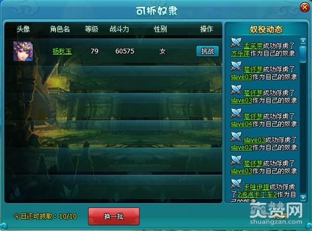 3.点击抓奴隶点开起可抓奴隶面板,选择一位玩家挑战,挑战成功即可抓取该玩家作为自己的奴隶。