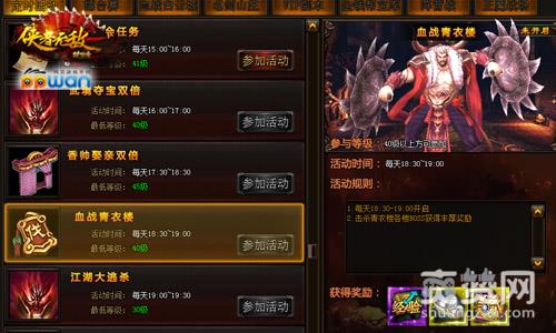 青衣楼,一行动诡异的江湖帮派,由于楼中有多位楼主,且各个身怀异术,行事残忍决绝,曾多次在江湖上掀起腥风血雨。ppwan《楚留香新传》青衣楼再现江湖,一场阴谋,一场血战即将开始!……青衣楼在ppwan《楚留香新传》中,每天14:00-14:30,18:30-19:00开启两次,青衣楼开启后,玩家可和小伙伴们一起深入青衣楼境内
