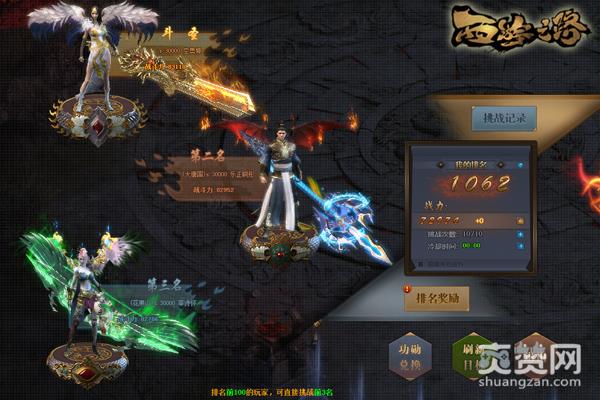 进入个人竞技界面后,玩家首先将看到的是当前个人竞技场内的排名情况。界面内,左侧为竞技场当前排名前三的顶尖高手,而右侧则为依据玩家当前排名来随机列出的可挑战对手——当玩家排名进入TOP100以内时,即可直接挑战前三位的玩家,从而获得直接晋升排名的宝贵机会。而战胜排名榜首的玩家,即可获得最为尊贵的“斗圣”称号!