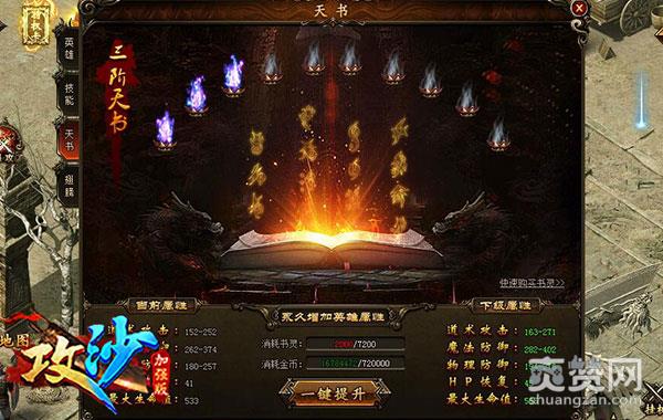 2、天书不但可以提高英雄属性,而且还是永久性地提升!不必担心因为英雄死亡而降低属性!只要升级了天书,就永远增加英雄属性!