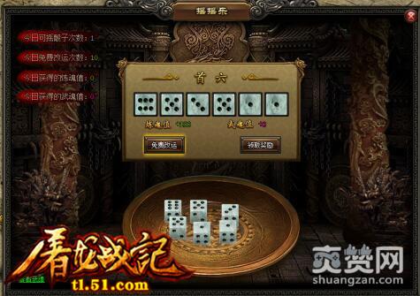 51《屠龙战记》摇摇乐是一个挺有趣的设计,六个骰子,一天只能完成两次任务,每次摇到6才能获取更高的炼魂值和武魂值,武魂的获得只能从摇摇乐里面获得,所以想要升级武魂就要累计,希望天天六六大顺哦。