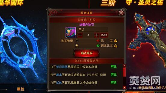 如果你绑定元宝比较多,可以通过消耗绑定元宝来购买。同样,兑换商城里面的荣誉商城也可以兑换,魔法农场种植作物也可以获得,还有农场商店也能兑换到魂器升阶石。看来傲天魔法王座中获取这种材料的方式还是比较多的。