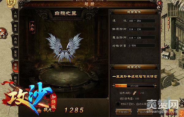 2、翅膀等级越高,外形越霸气,玩家可通过消耗羽毛材料升级翅膀,羽毛材料通过参与日常活动任务获得。