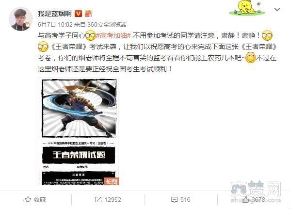 昨天,一年一度、雷打不动的高考正式上演,与此同时,最火手游《王者荣耀》也来凑热闹。