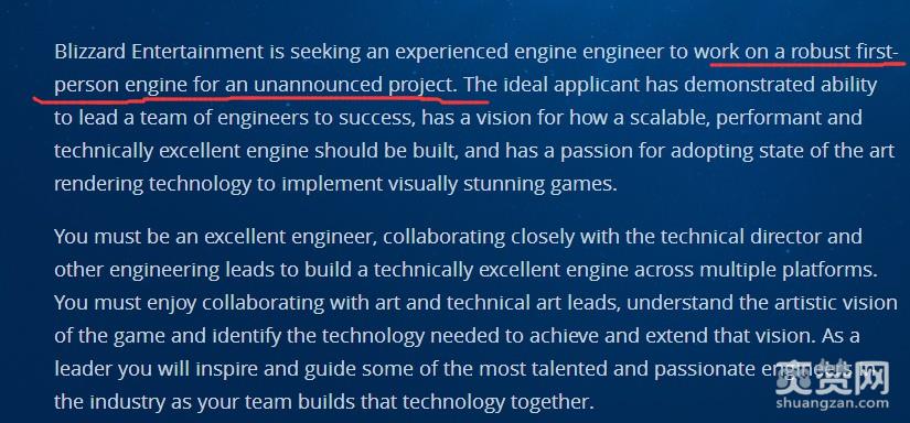 此前暴雪也曾公布过一个职位,招聘一位经验丰富的工程师为一个“未公开项目”设计第一人称引擎。所以暴雪真的是要在《守望先锋》之外再做一个第一人称作品?