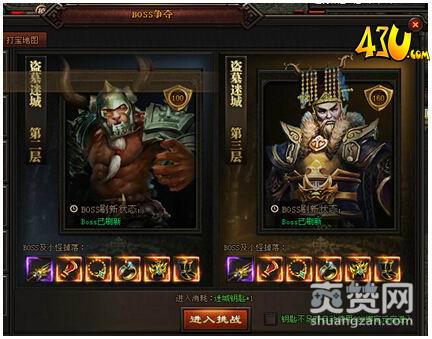 盗墓迷城是一个极品产出地图,掉落率远高于野图,不论BOSS还是小怪均可能掉落外界不常见的极品装备。为了防止43u《魔龙诀》新手误入其中而丧命,勇士们想进入盗墓迷城的第二层和第三层均需要一定的迷城钥匙,而钥匙可通过击杀一层怪物几率获得。当然,如果你怕麻烦的话,在钥匙不足时可使用200绑定元宝直接进入。
