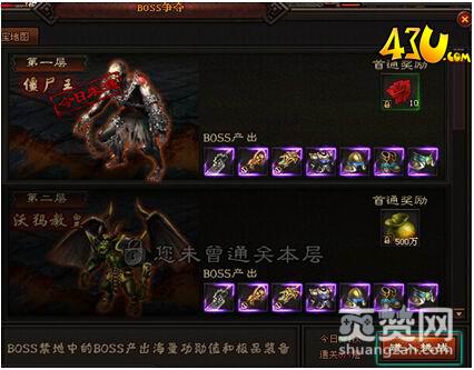 严格来说,BOSS禁地是专为来不及抢夺BOSS的玩家设计的打宝地图,使用禁地令牌即可进入挑战。在这里,BOSS产出同野图BOSS,但难度大大降低,乃是散人玩家福音之地。