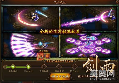 51《剑雨江湖》完成85级主线任务,开启飞升成仙系统。如果你已达到85级,会自动开启系统。