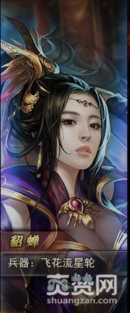 在这款游戏当中,貂蝉属于是一个刺客型的职业,擅长于法系远程攻击,暴击伤害也很高,她的武器为飞花流星轮。