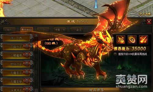 巨龙巨龙你擦亮眼,永永远远地擦亮眼。如今,沉睡已久的恶龙——远古魔龙已经苏醒。如果你觉得前面所说的都只是两条腿的BOSS,认为不足为奇,那么拥有带有利爪的四肢,一双喷发出烈火的翅膀,以传统龙的形象出现的远古魔龙,则满足你受虐的所有需求。远古魔龙居住的魔龙神殿犹如龙潭虎穴,其85万的血量并不是盖的,足以让实力不够的玩家还没近身就失血过多而死。