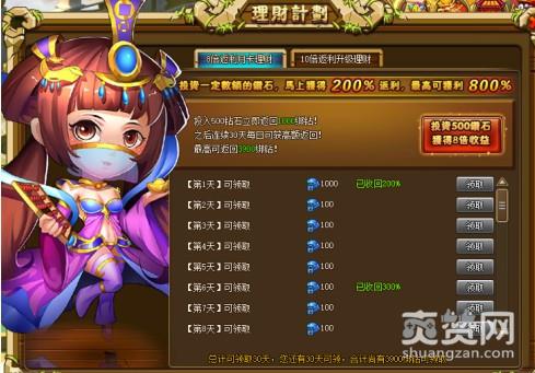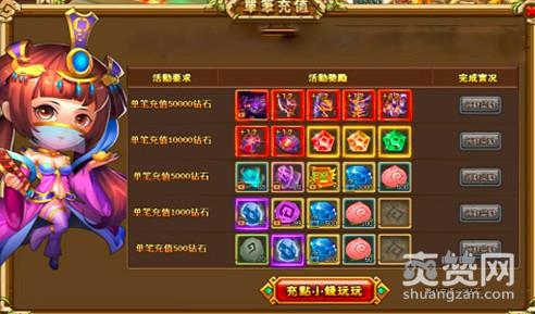 活动内容:玩家投入一定数量的钻石后,可以在人物达到相应等级后领取绑钻