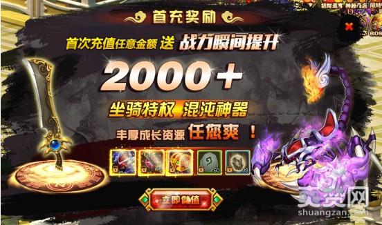 活动内容:活动期间内,玩家在游戏里第一次充值成功后就可以领取一次充值奖励,只能领取一次,领取成功后活动结束。