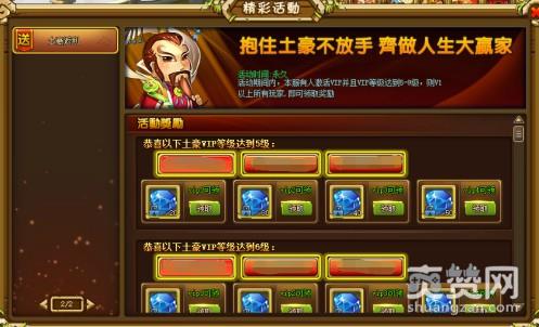 活动内容:活动期间内,每一个玩家激活VIP并且VIP等级达到5-9级,其他VIP玩家可以领取一次奖励。
