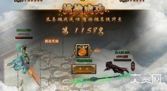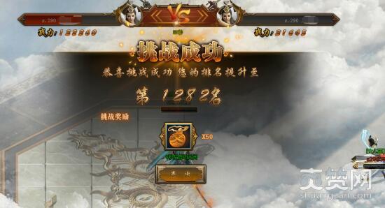 不是说一共10次?那就继续挑战吧。小编在挑战过程中发现,往上走有些排名的战斗力也很一般,比如上面1282名的只有小编战力的零头20000多一点。不过没关系,只要继续挑战升级排名就好。每场胜利都将获得50积分,每天拿到500积分不断积累将可兑换大量的宝贝。