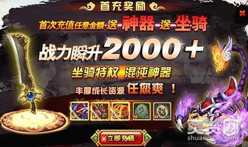 首充任意金额,就能得到强力神器和坐骑,战力瞬间2000+,坐骑特权,混沌神器,丰厚成长任你爽!还在等什么,赶快行动吧!