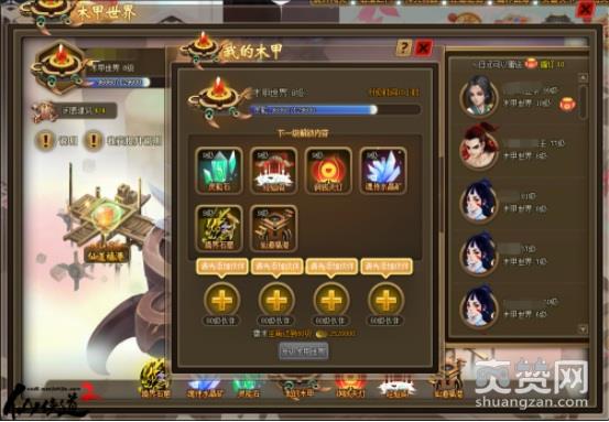 而且玩机之家《仙侠道2》木甲世界也是有等级的,每次升级都是需要自己的小伙伴来帮助建造,建造时间随着建筑的等级变高而变长的,不过需要时间的系统都会有另一种强大的道具来节省玩家的时间,那就是元宝!但是木甲世界主建筑建造等级越高,需要的小伙伴越多,小伙伴等级要求也会随之增高,所以大家一定要在客栈招揽一些小伙伴,否则木甲世界可是很难运作起来的呢。