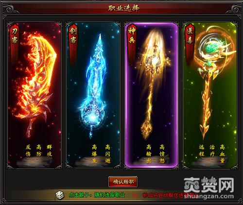 我去玩《龙之炎黄魂》分为四大职业:刀客、剑客、神兵、医毒。每个职业的侧重点完全不同,一个人闯荡江湖的页游时代在这个游戏里面是行不通的,想要达成最佳团队,每个职业都是必不可少的。