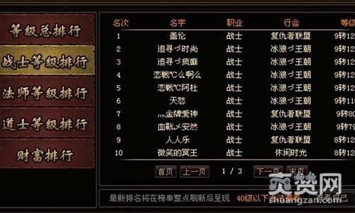 萝卜玩《逐日战神》排行榜共分为五张榜单,分别是等级总排行榜、战士等级排行榜、法师等级排行榜、道士等级排行榜与财富排行榜。每张榜单分别代表一种实力,再强大之人也没有全数上榜,毕竟三大职业的等级排行只能荣登一榜。但是如果能登上等级总排行、职业等级排行与财富排行,这证明你是呼风唤雨的人。