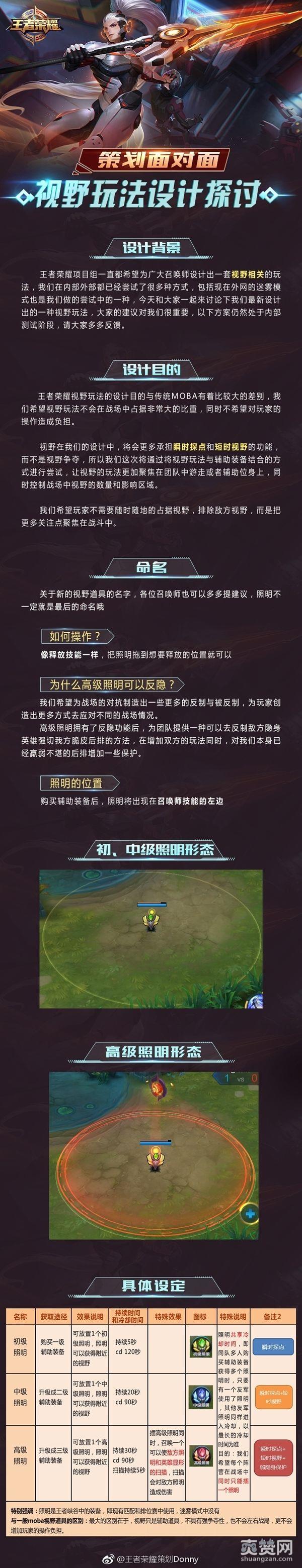 《王者荣耀》视野系统暂定名为“照明”,有初级、中级、高级之分,其中高级拥有反隐功能,可以反制兰陵王这类敌方隐身英雄强切我方脆皮后排的方法。