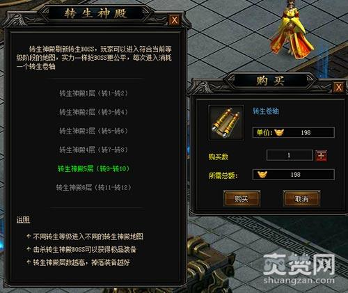 玩家转生达到1转后,消耗转生卷轴才可进入,可在商城购买转生卷轴